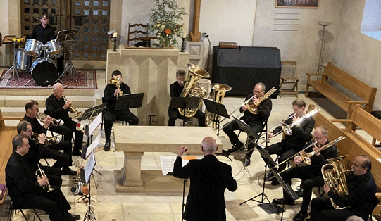 Le programme était commenté par le dynamique directeur du Brass Ensemble, Michel Burnand. La berceuse de Jean-François Michel, compositeur fribourgeois, nous a emmenés à l'alpage avec appel en solo et écho des cornets, avant High Five, de Gilbert Karlen, et Distant Land, prière pour la paix de John Rutter. Cette très belle harmonisation invitait à la sérénité, d'où l'importance de la musique qui peut parfois exprimer, mieux que des mots, nos sentiments. Nous avons aussi plongé dans l'ambiance de musiques de film avec Crimson Tide, de Hans Zimmer.