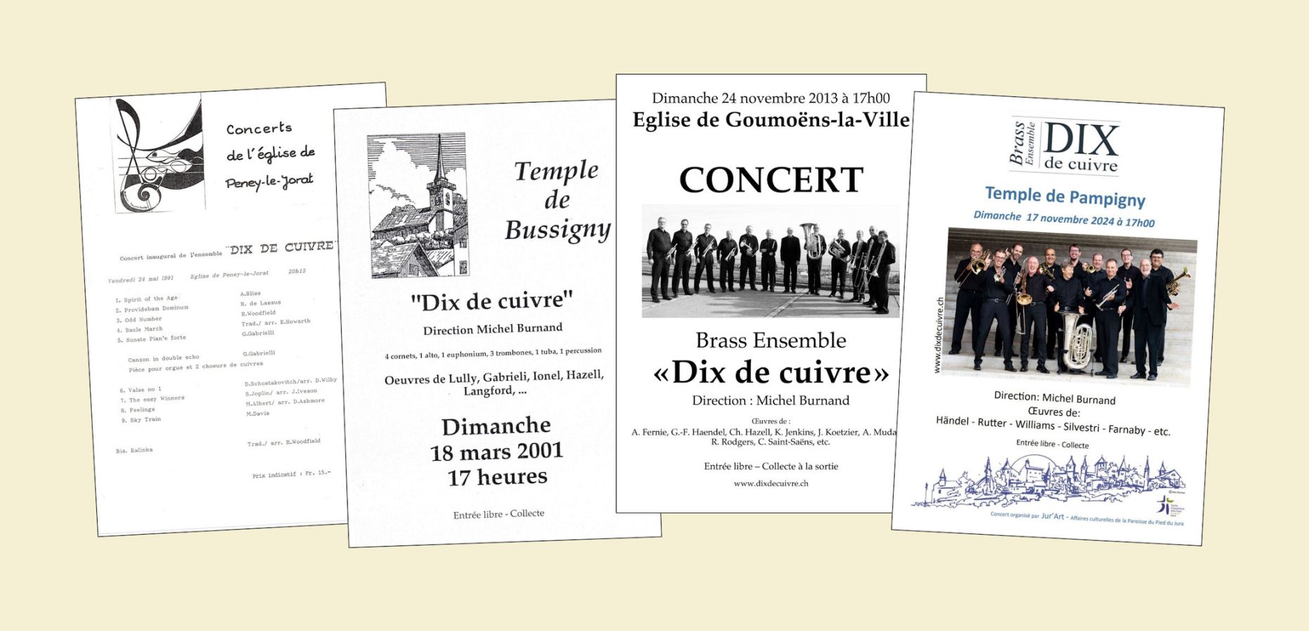 Voici une sélection d'affiches des concerts de Dix de Cuivre (de 1991 à 2025)