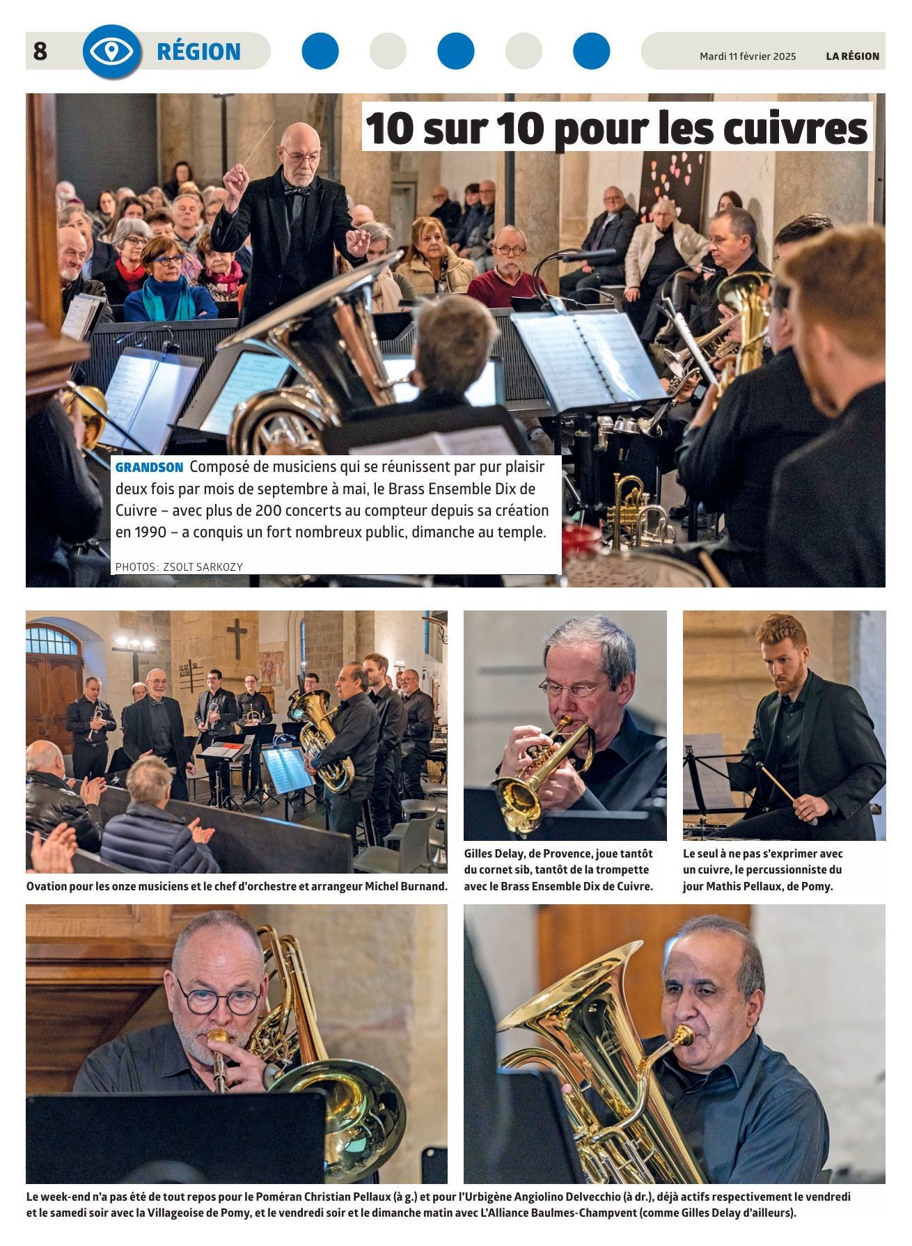 Article de presse du concert de Dix de cuivre à Grandson le 9 février 2025